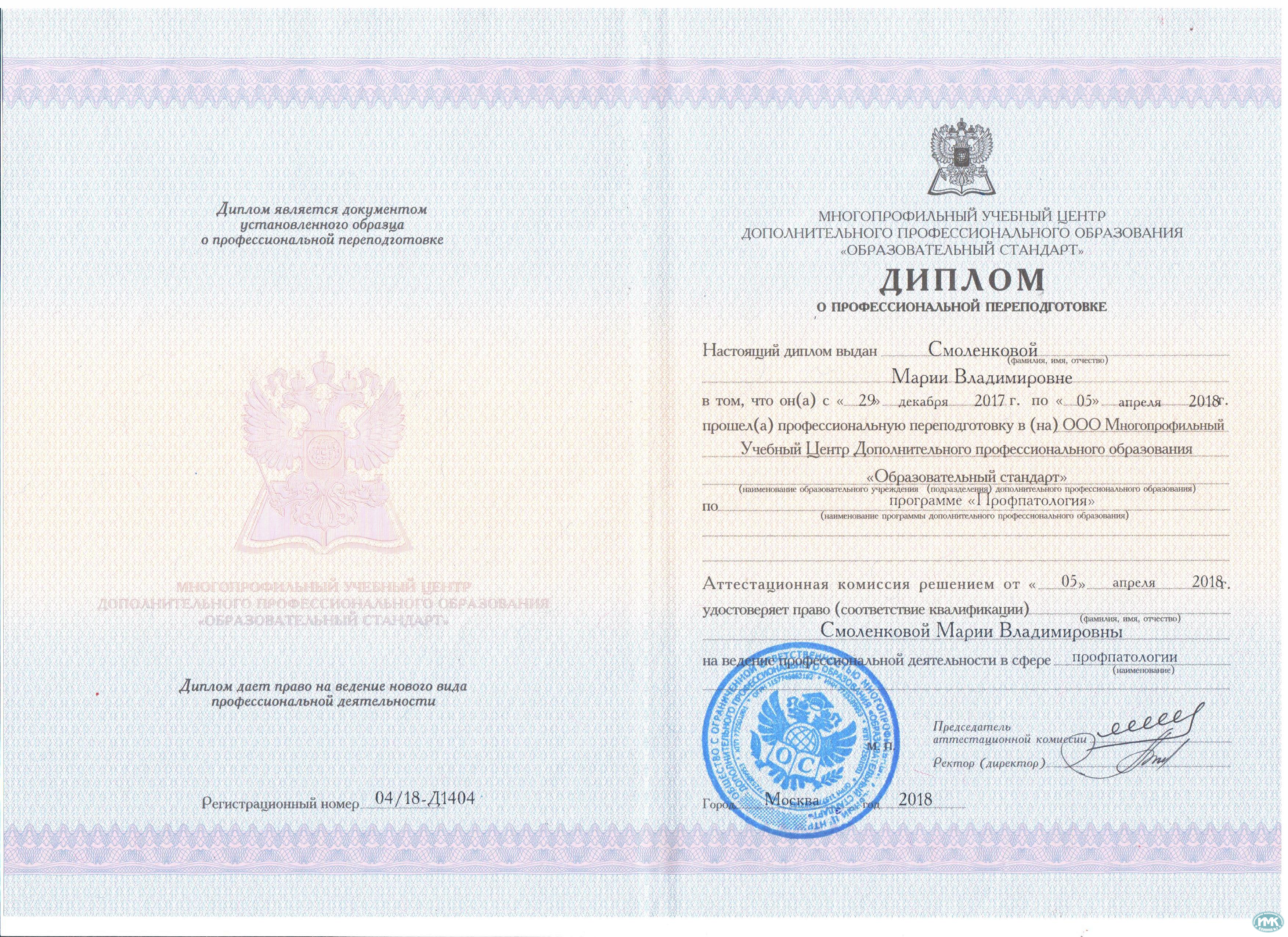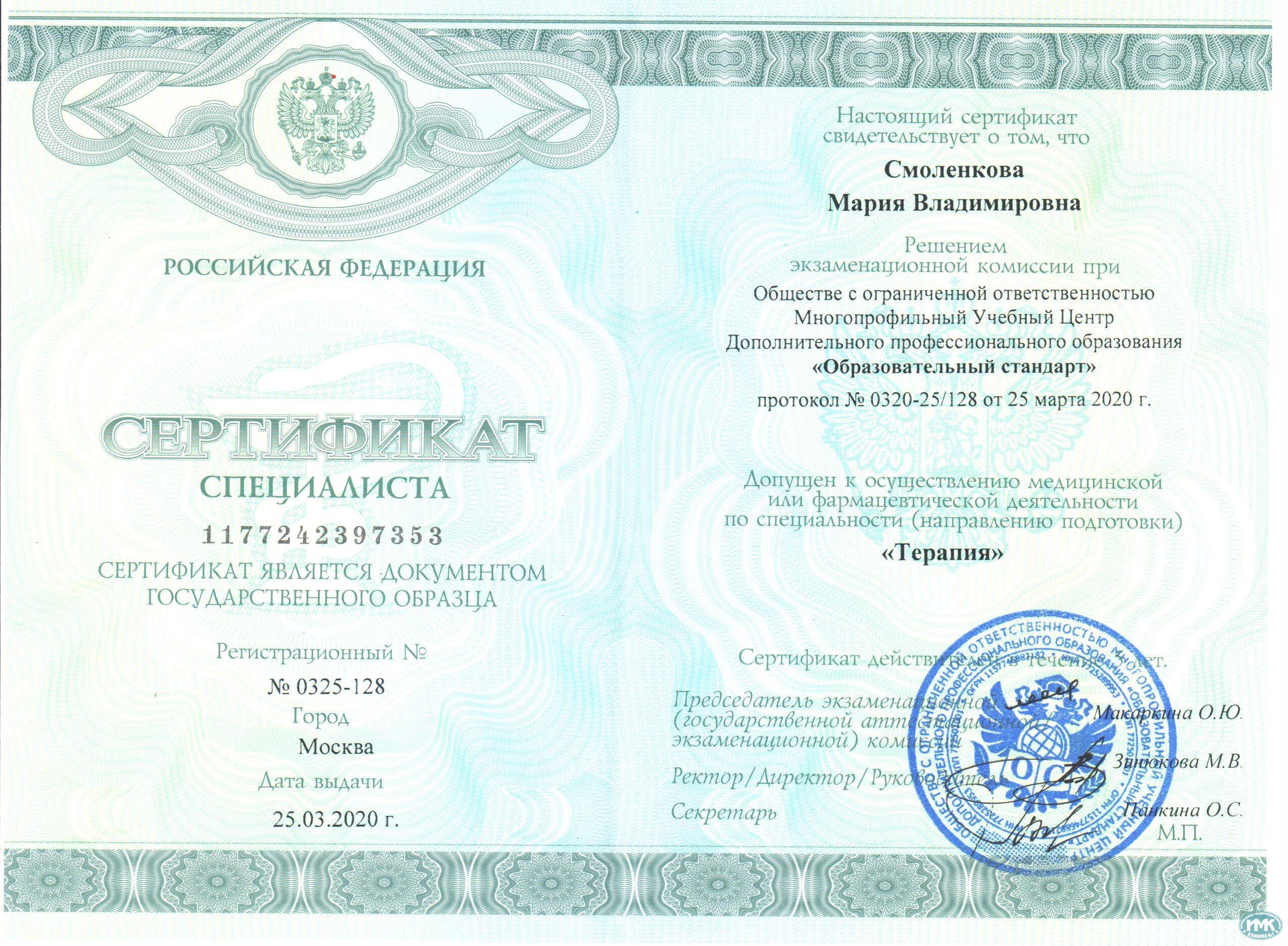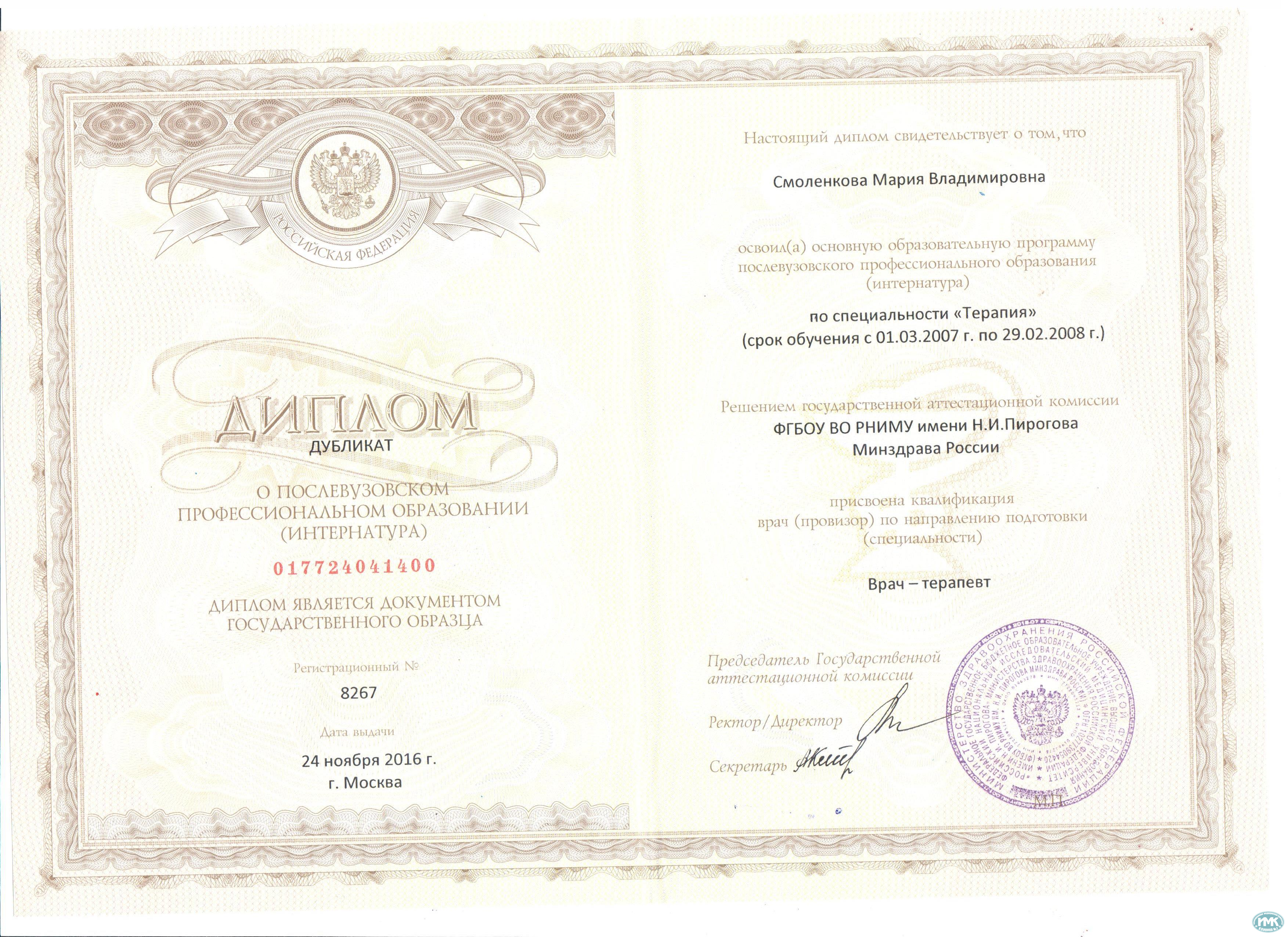 Прошла повышение квалификации в Российской академии последипломного образования по программе «Терапия».